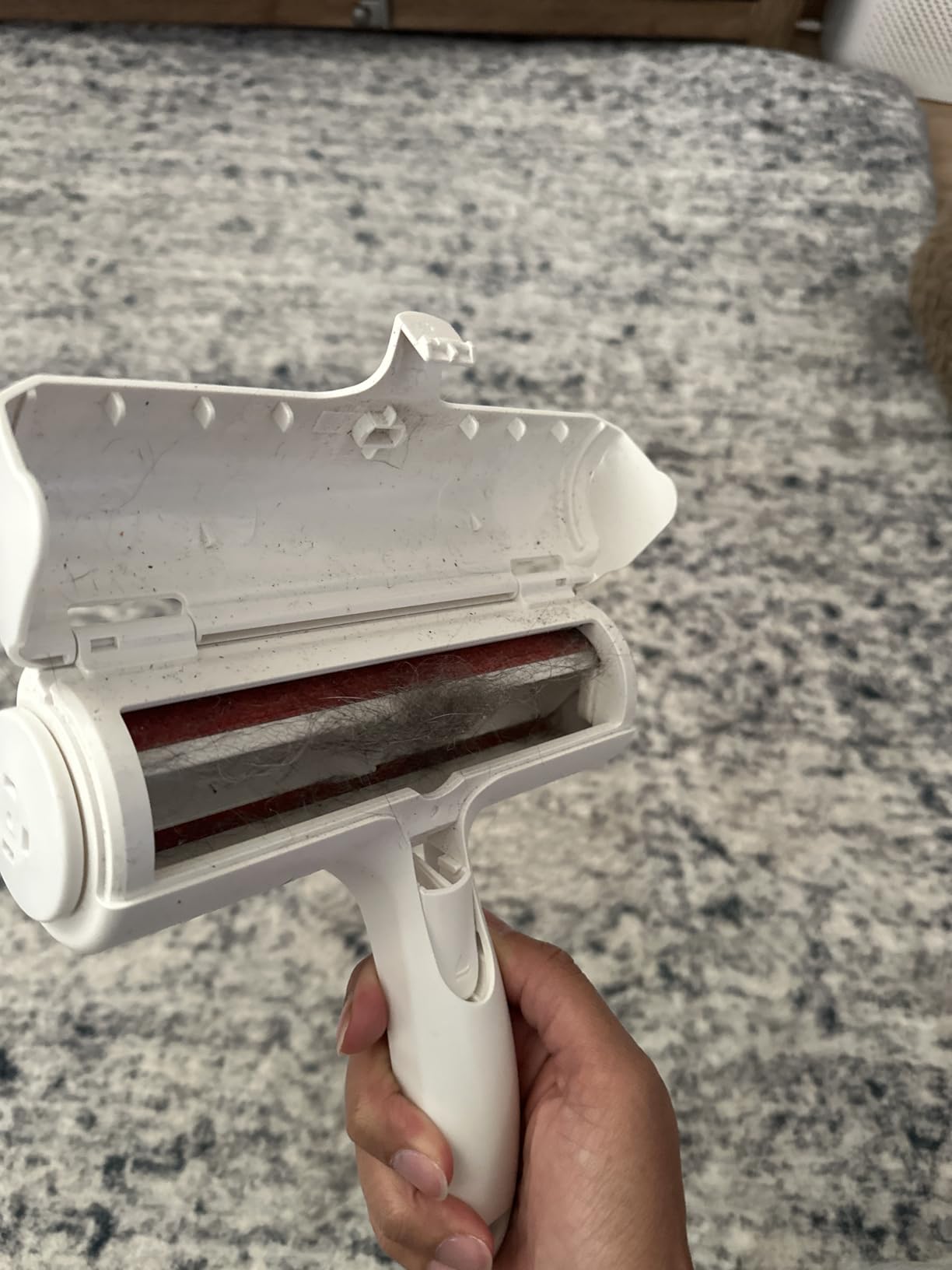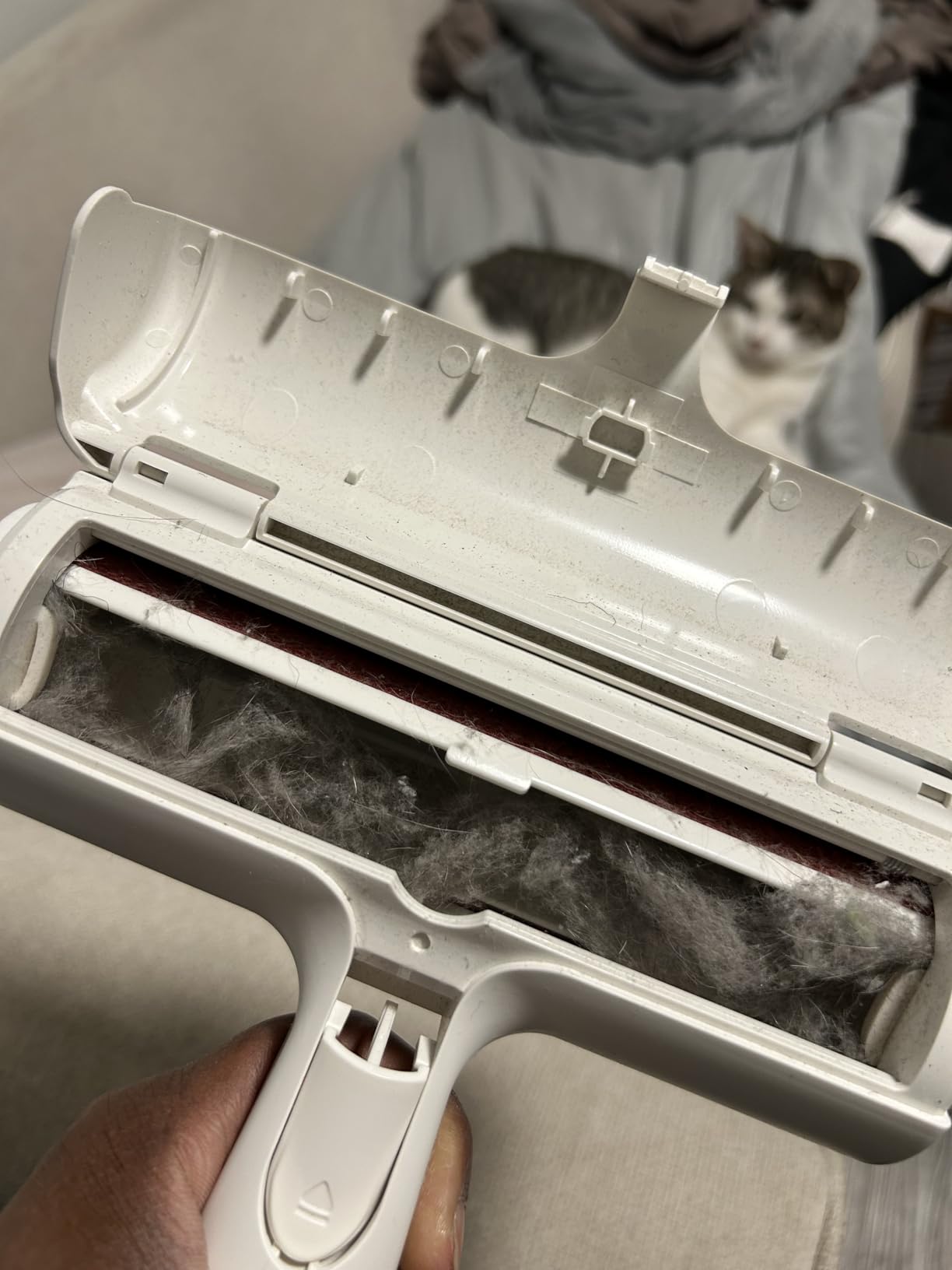 Самият Космо ролер се почиства изключително лесно. Просто отваряш капачето, издърпваш събраната козина с ръка. След това по течаща вода може да изплакнете ролера и го оставате да се изсуши.