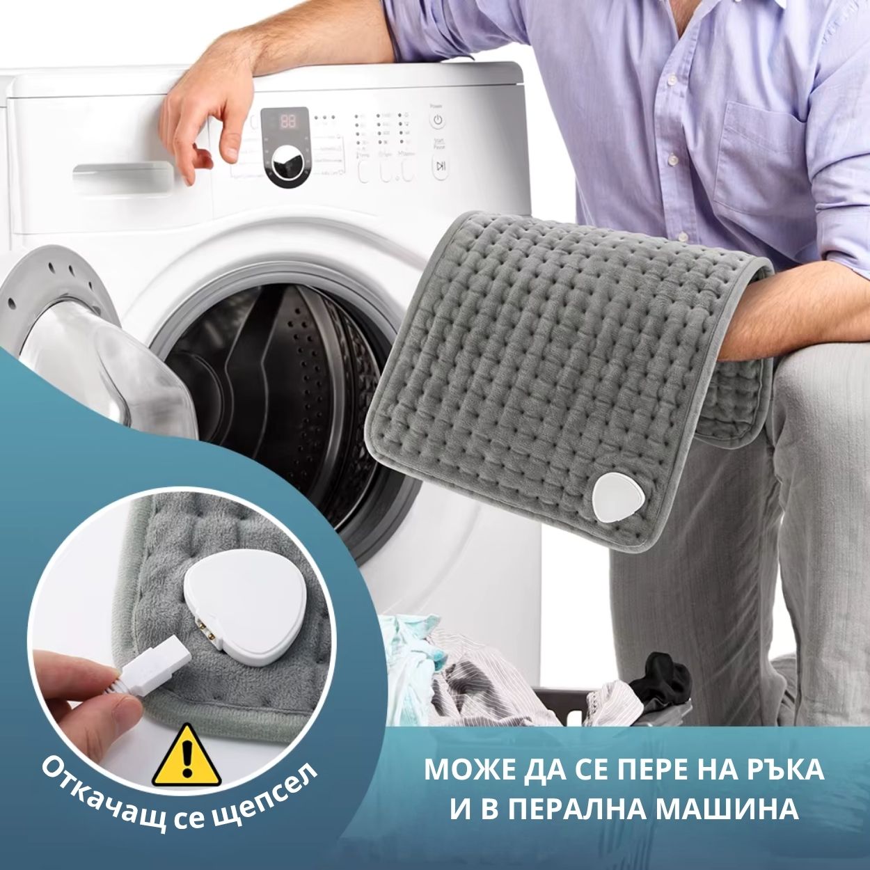 Изработена от висококачествен микрофибър, подложката е приятна на допир и разпределя топлината равномерно. Перфектна е за използване по време на пътуване, в хотел, на работа или у дома. Просто я включваш, избираш подходящата температура и се наслаждаваш на приятно отпускане, независимо къде се намираш.
